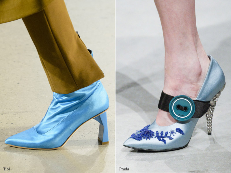 В 2017 в моде сатиновые, а также атласные туфли уже появились повсеместно наряду с бархатной обувью. Miu Miu представила сандалии на платформе в пастельной гамме, в Givenchy предложили перфорированные мюли, а Monse продемонстрировали лодочки в кобальтово-синей и вишневой гамме.
