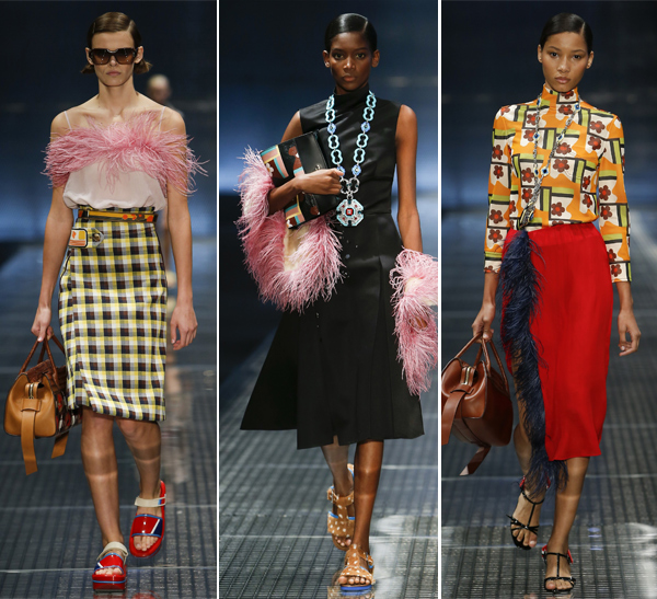 В моду снова вошли такие атрибуты семидесятых годов, как – обувь на платформе и плоской подошве, брюки кроя-клеш, юбки кроя-колокол, одежда из кожи (что, конечно же, довольно необычно для лета), рукава а-ля «летучая мышь», довольно короткие платья Н- и А-силуэтов, ну и, конечно же, длинные платья в нестареющем стиле «хиппи».