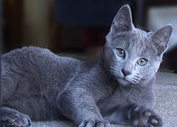 Также говорят, что царская семья в лице Екатерины II подарила английскому королевскому дому таких кошек. Как бы то ни было, в семидесятых годах XVI века породой заинтересовались англичане и она была впервые представлена на выставке в 1880 году. Интерес был связан с улучшением качеств породы британских кошек, так как у русских голубых была намного лучше шесть, а также, возможно, и другие черты.