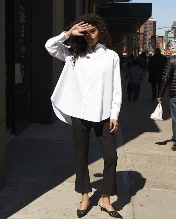Рубашку можно носить с украшениями всевозможных видов и цветов. Под нее подойдет любая обувь: от нарядной до спортивной.