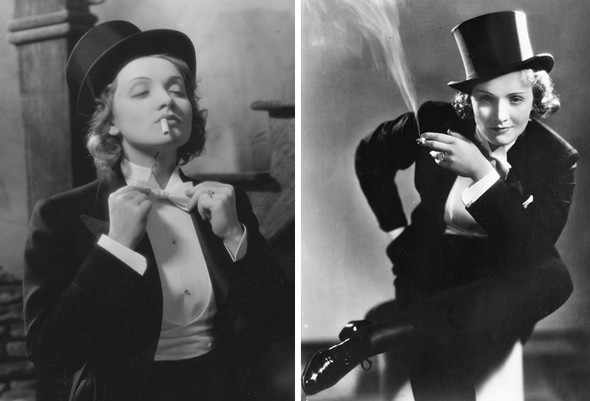 До начала двадцатого века немыслимо было даже представить себе, что девушка может нарядиться в мужскую одежду. Однако после того как Коко Шанель надела свою знаменитую тельняшку, история женской моды уже никогда не была прежней. Любовь к мужским аксессуарам и костюмам разделяли и многие знаменитые актрисы.